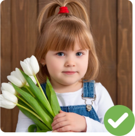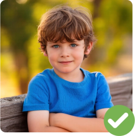 Выберите фото, которое максимально близко передает черты лица Вашего ребенка с минимальным количеством теней, где ребенок смотрит в объектив.