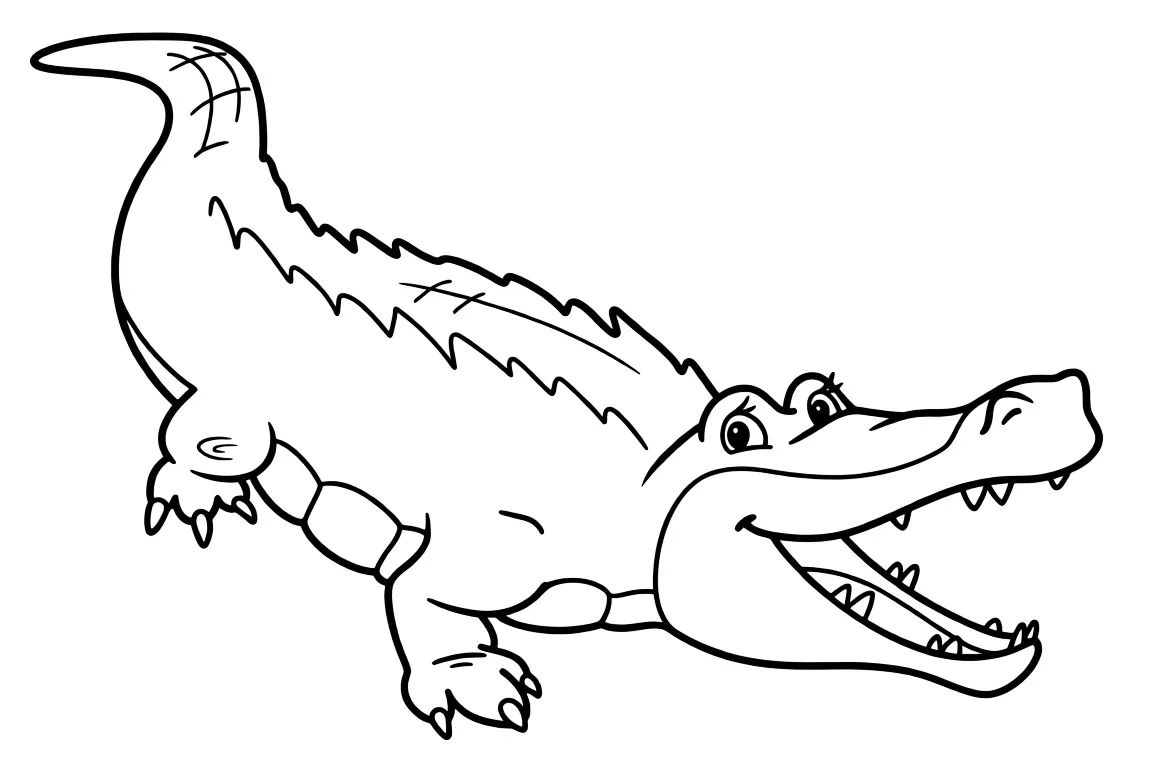 Раскраска «Добрый крокодил» Распечатать На пол-листа СкачатьВсе раскраски КрокодилСмотрите такжеБаранБегемотБелкаБыкГусь
