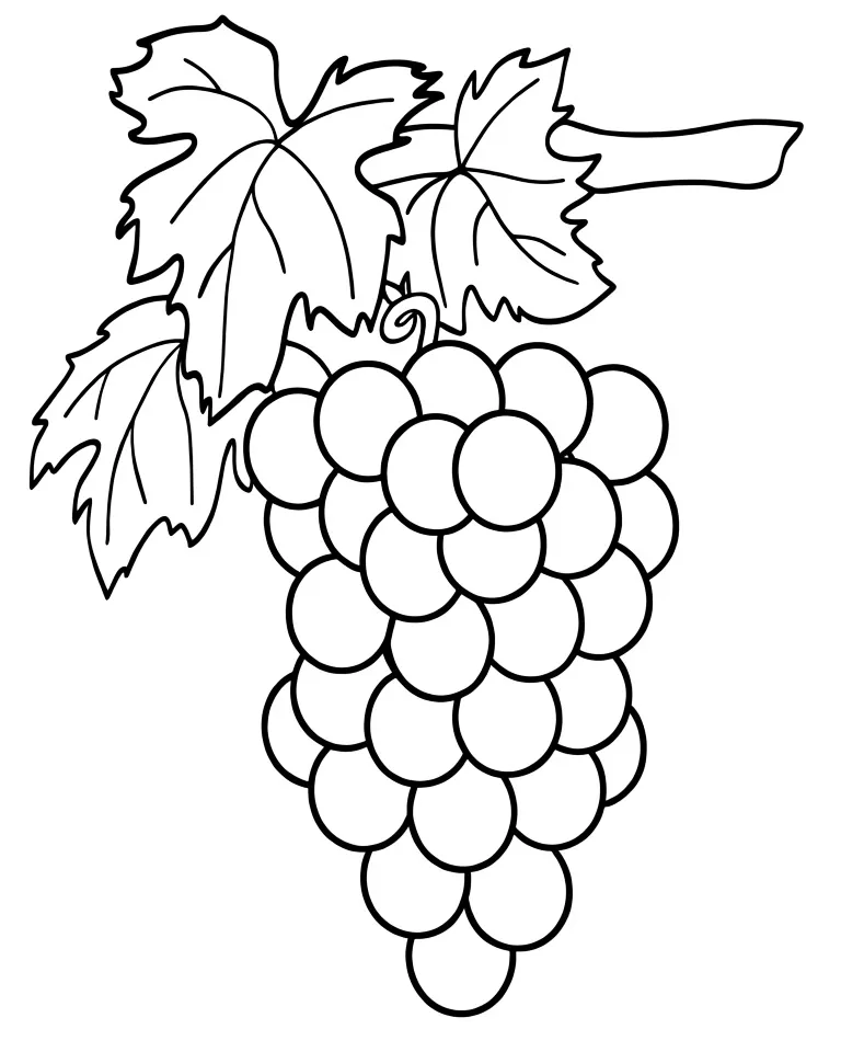 Раскраска «Гроздь винограда» Распечатать На пол-листа СкачатьВсе раскраски ВиноградСмотрите такжеАвокадоАнанасАпельсинАрбузБаклажан