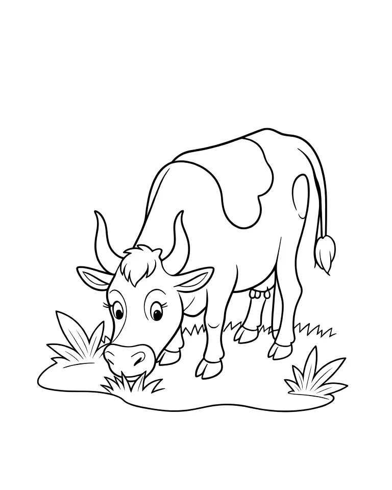 Раскраска «Корова на фоне листьев» Распечатать На пол-листа СкачатьВсе раскраски КороваСмотрите такжеБаранБегемотБелкаБыкГусь