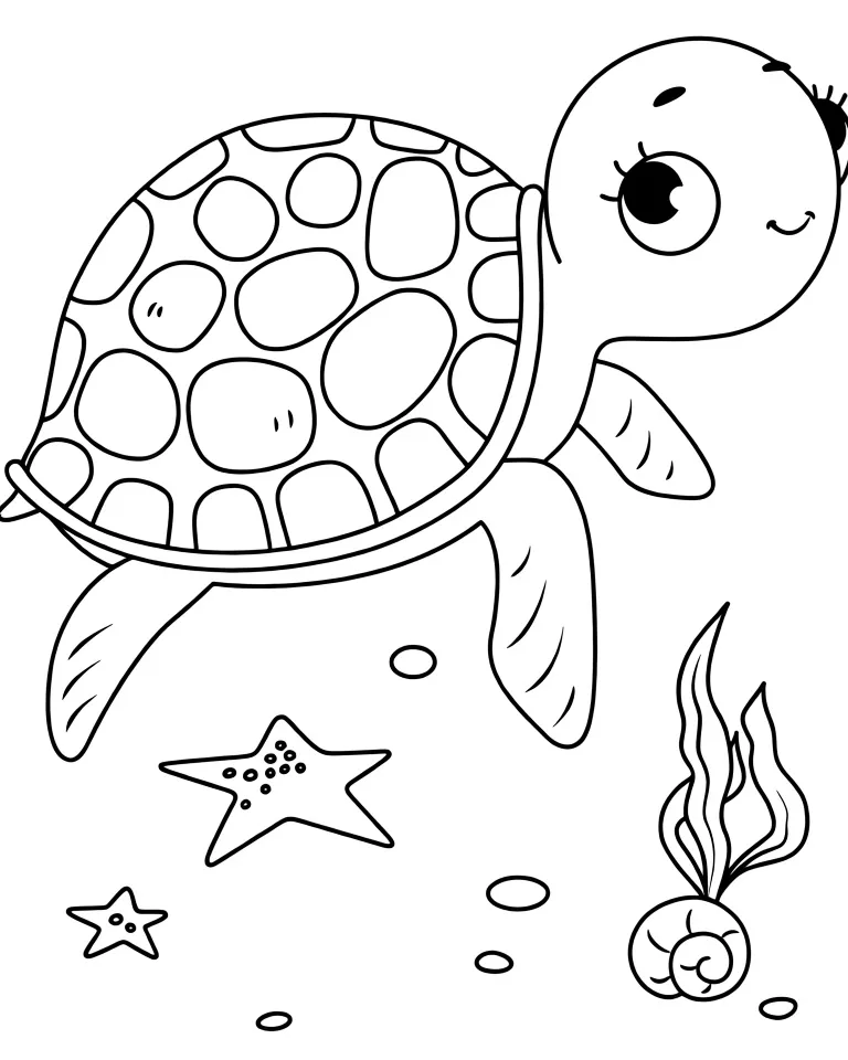 Раскраска «Красавица черепашечка» Распечатать На пол-листа СкачатьВсе раскраски ЧерепахаСмотрите такжеАкулаДельфинКитКрабМедуза