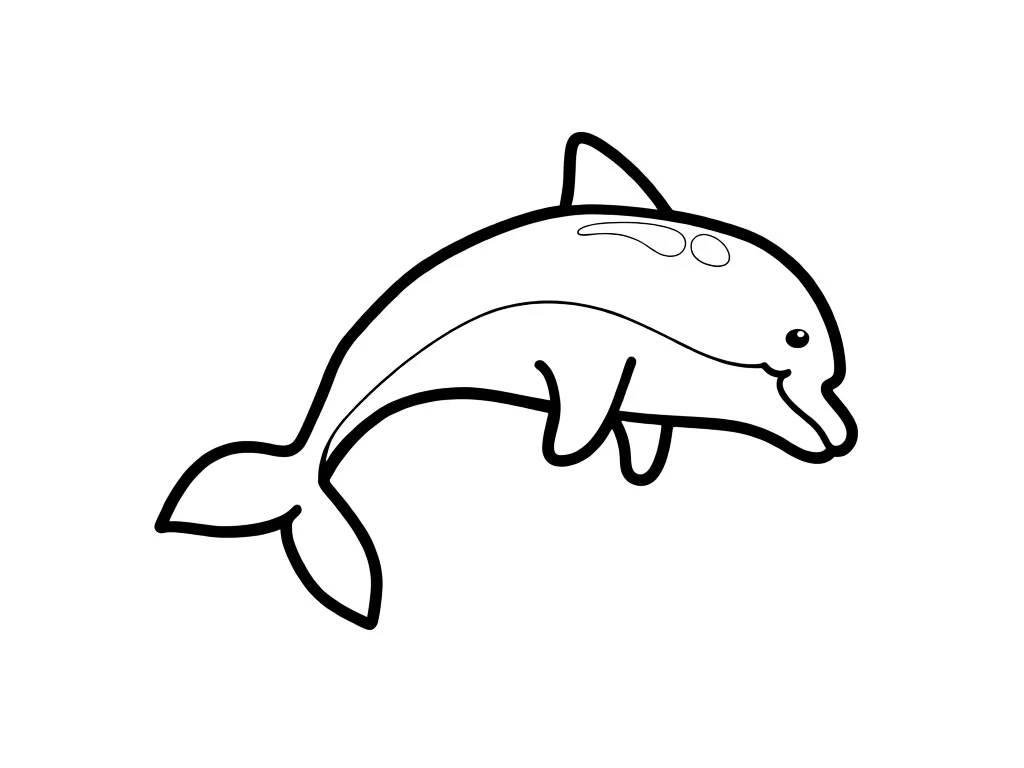 Раскраска «Маленький дельфин» Распечатать На пол-листа СкачатьВсе раскраски ДельфинСмотрите такжеАкулаКитКрабМедуза
