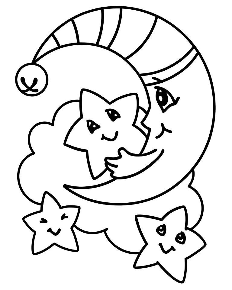 Раскраска «Месяц улыбается» Распечатать На пол-листа СкачатьВсе раскраски ЛунаСмотрите такжеГрибДеревоОблакоСолнце