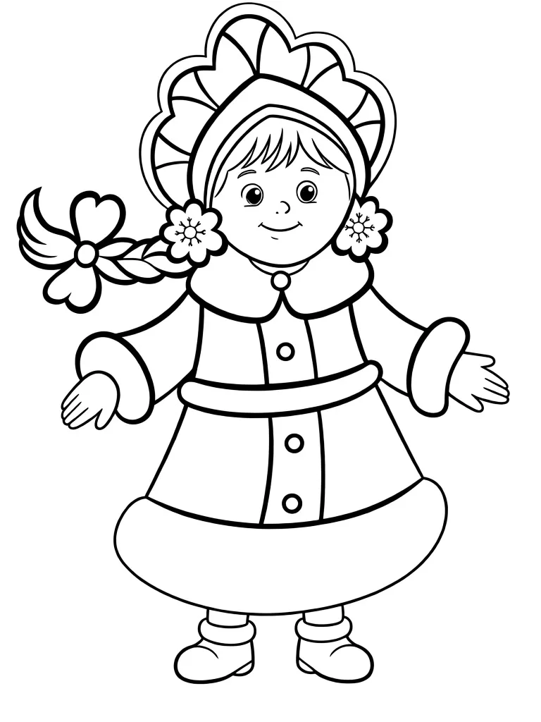 Раскраска «Милая Снегурочка» Распечатать На пол-листа СкачатьВсе раскраски СнегурочкаСмотрите такжеДед МорозЁлкаПодарокРебёнокСнеговик