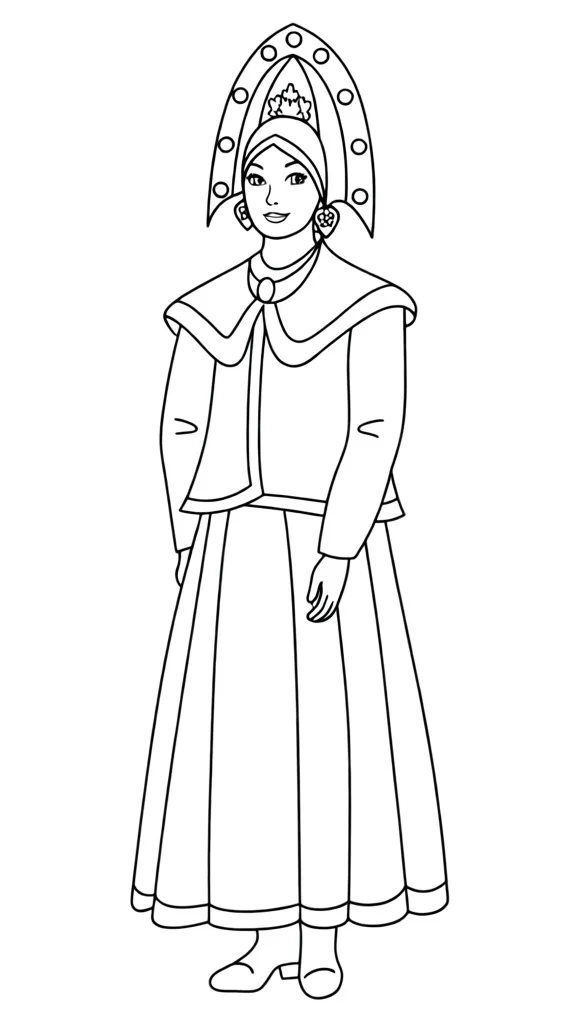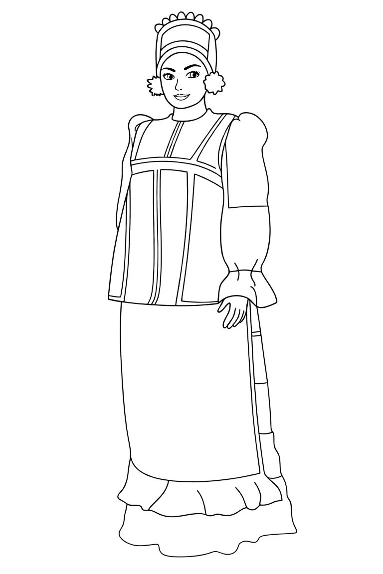 Раскраска «Наряд с кокошником Нижегородской губернии» Распечатать На пол-листа СкачатьВсе раскраски ДевочкаСмотрите такжеДомМатрёшкаМузыкальный инструмент