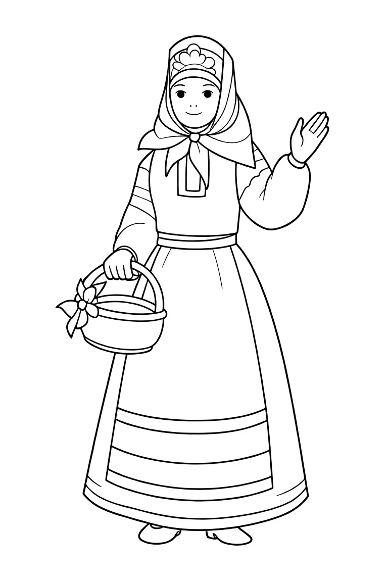 Раскраска «Наряд Волгоградской губернии» Распечатать На пол-листа СкачатьВсе раскраски ДевочкаСмотрите такжеДомМатрёшкаМузыкальный инструмент