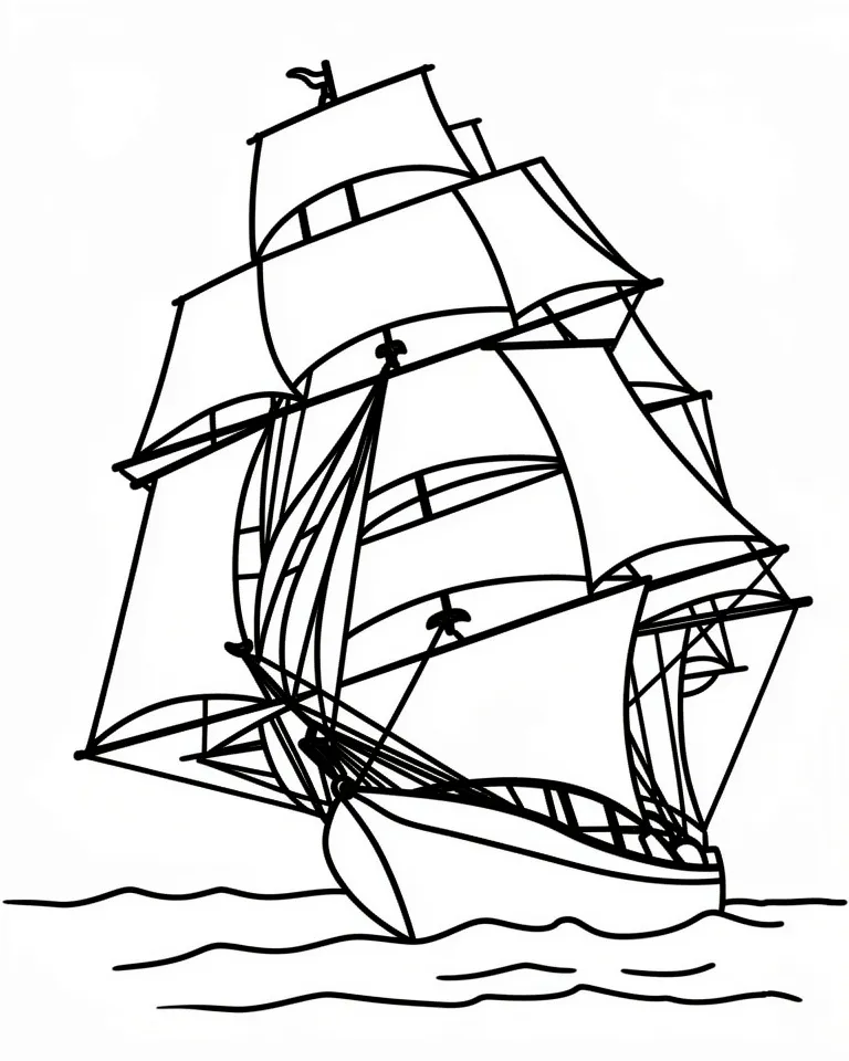 Раскраска «Парусник на волнах» Распечатать На пол-листа СкачатьВсе раскраски КорабльСмотрите такжеВелосипедГрузовикМашинаМотоцикл