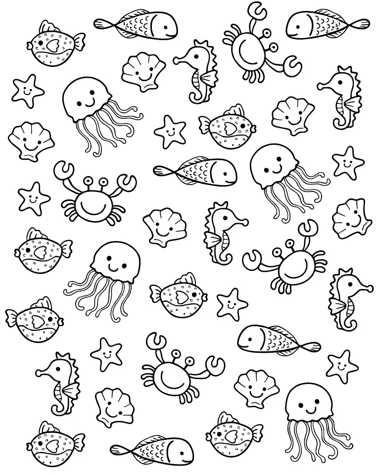 Раскраска «Рыбная тусовка» Распечатать На пол-листа СкачатьВсе раскраски РыбаСмотрите такжеАкулаДельфинКитКрабМедуза