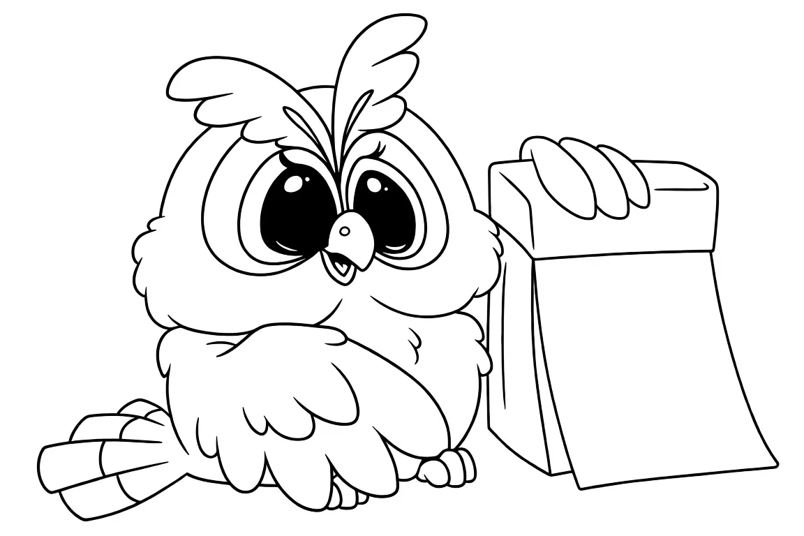 Раскраска «Сова на новый год» Распечатать На пол-листа СкачатьВсе раскраски СоваСмотрите такжеДед МорозЁлкаПодарокРебёнокСнеговик