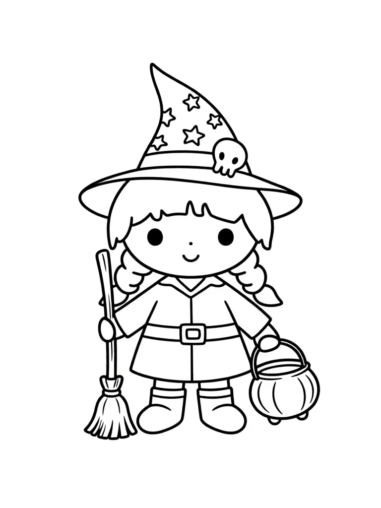 Раскраска «Ведьмочка читает заклинание» Распечатать На пол-листа СкачатьВсе раскраски ДевочкаСмотрите такжеДед МорозЁлкаПодарокРебёнокСнеговик