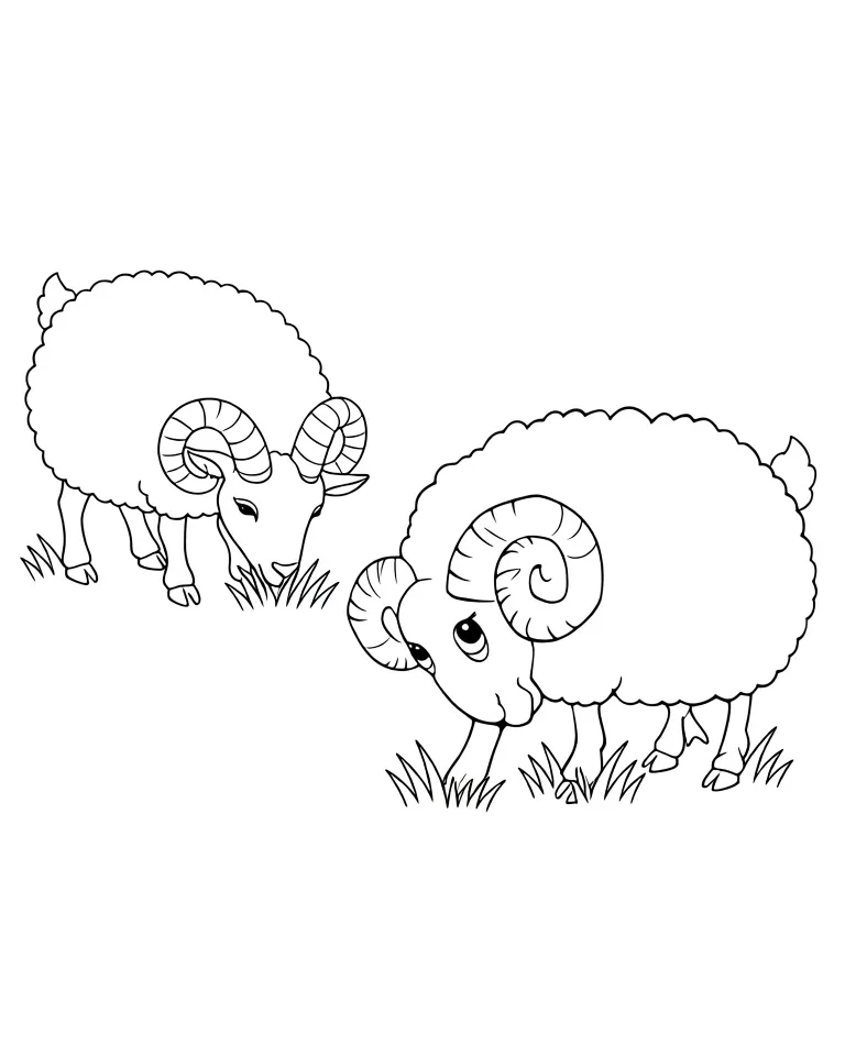 Раскраска «Веселый барашек» Распечатать На пол-листа СкачатьВсе раскраски БаранСмотрите такжеБегемотБелкаБыкГусь