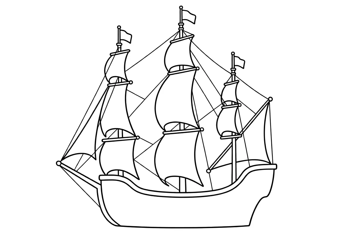 Раскраска «Весёлый кораблик» Распечатать На пол-листа СкачатьВсе раскраски КорабльСмотрите такжеВелосипедГрузовикМашинаМотоцикл